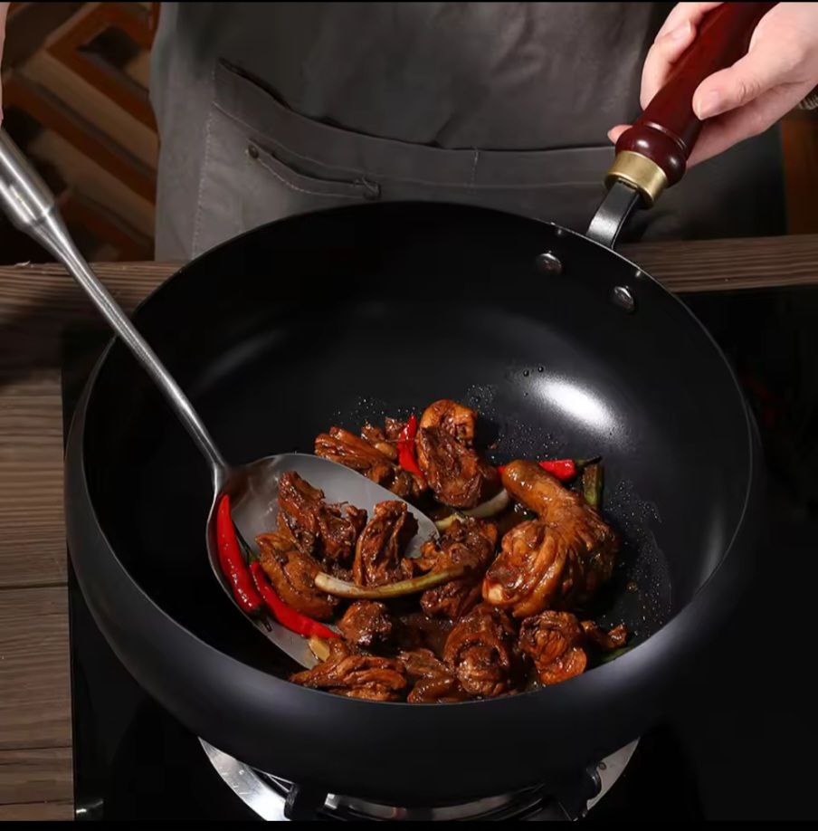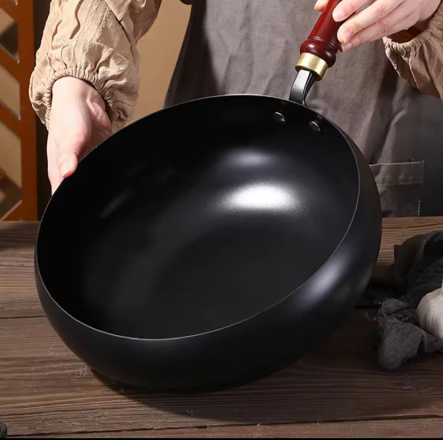 Non-stick frying wok pan multifunctional iron pan gas stove induction kitchen cookware (24cm)