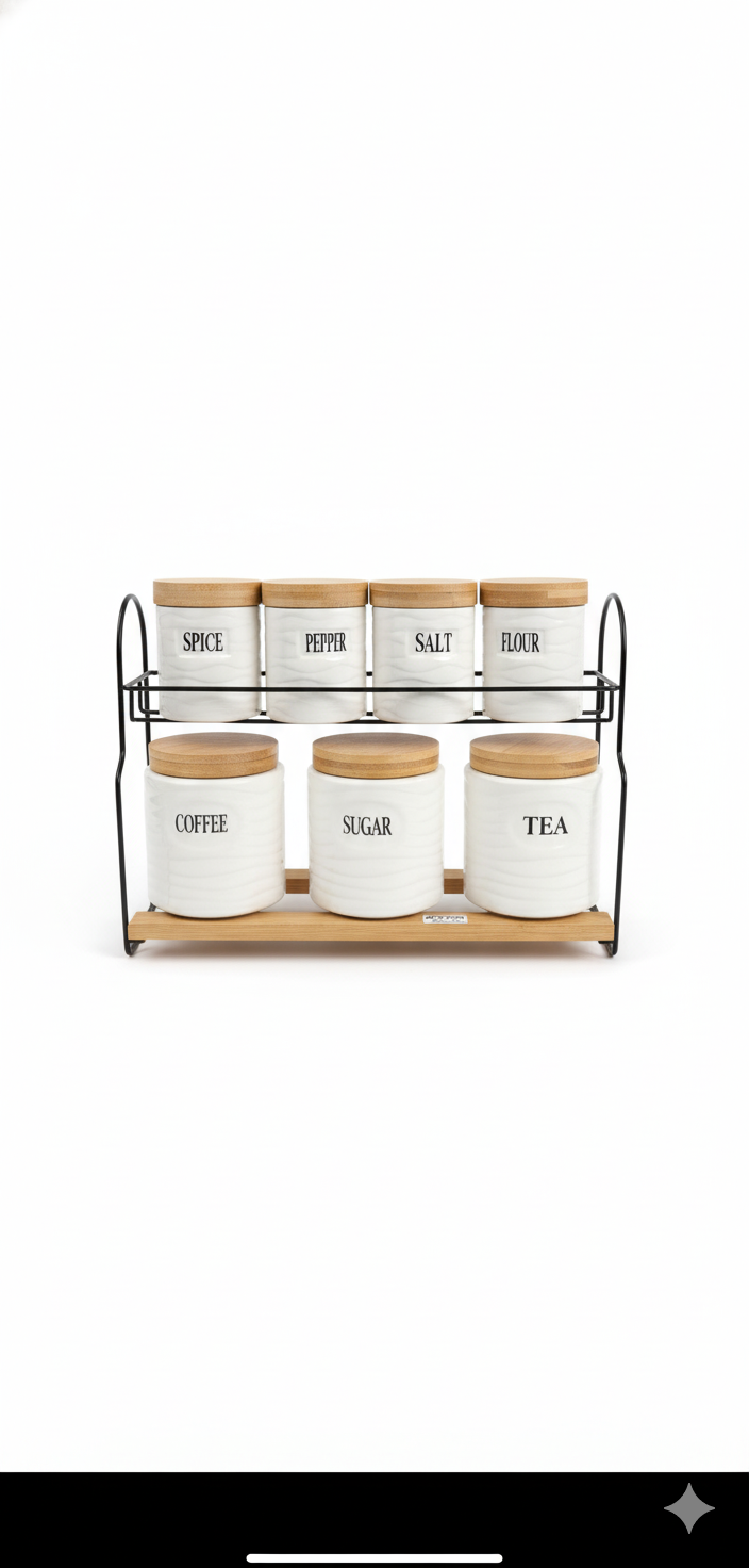 7 Piece Spice Jar Set with Stand an Wooden Cover